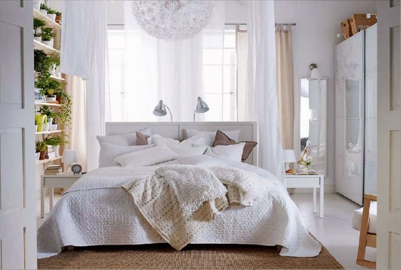 Благодаря большущему окну, а также оформлению белыми тонами, Ваша спальня будет визуально выглядеть гораздо больше. Они помогут сделать комнату больше даже в том случае, если она совсем маленькая.
