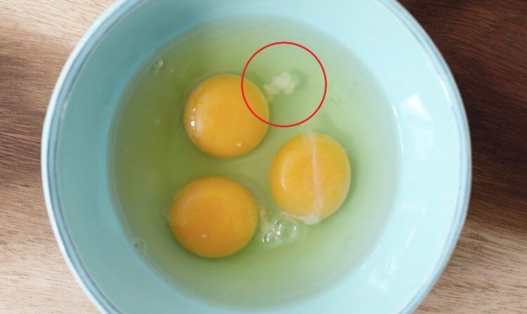 Поговорим о белых сгустках в яйцах, которые выглядят вот так. Источник изображения: yahoo.com