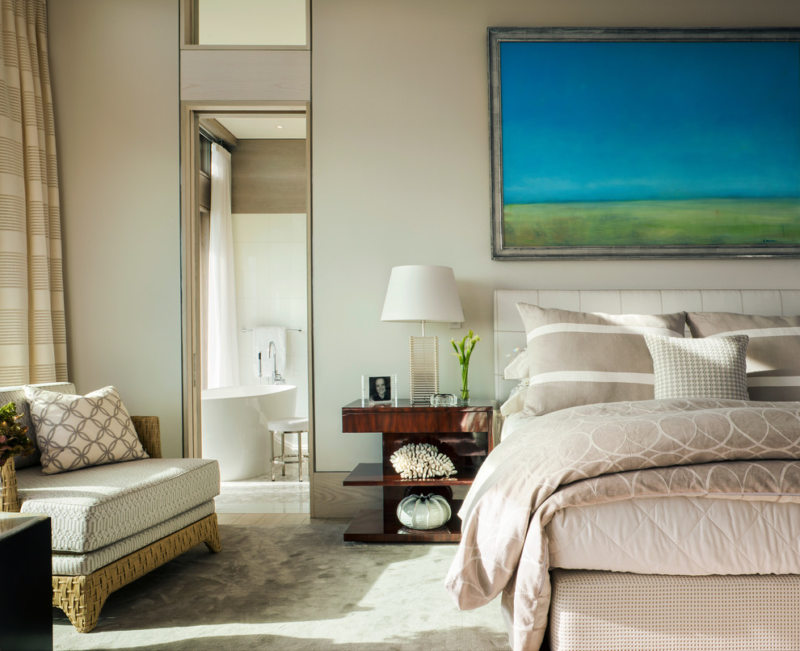Интерьер спальни в бежевых тонах позволяет сочетать самые необычные цвета, предметы, не бояться экспериментировать. Многоликость цвета позволяет как расставлять акценты, так и сглаживать структуру.