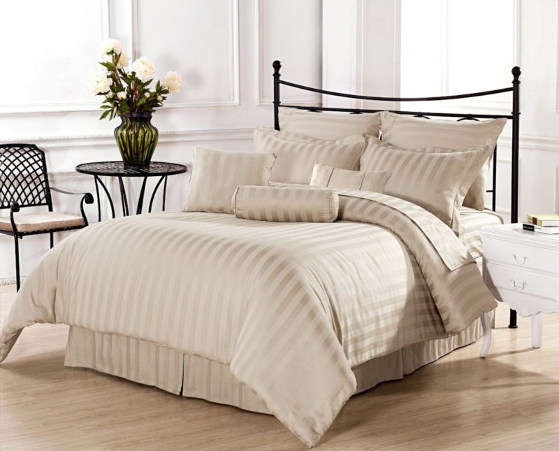 Отличными компаньонами бежу станут шоколадно-коричневый, серый, светлые варианты голубого, зеленого. Непревзойденной классикой для спальни в бежевых тонах станет белый.