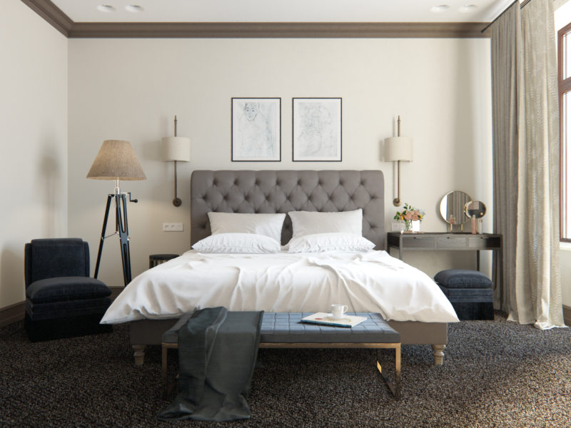 Черный поможет привнести в интерьер бежевой спальни роскоши, облагородить любую обстановку.
