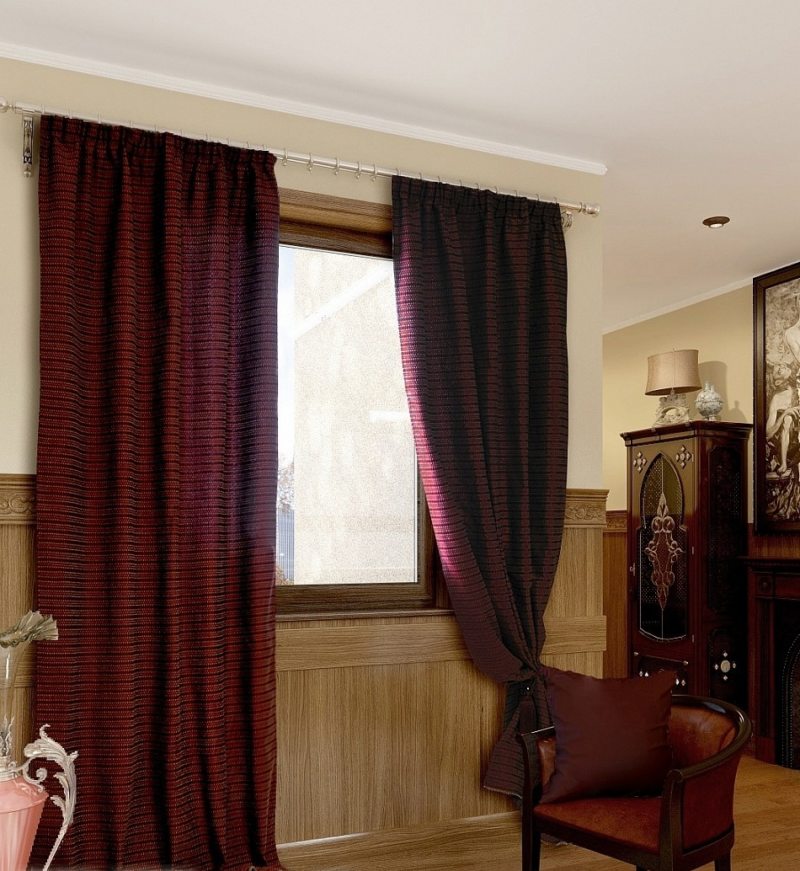 Отлично смотрятся на фоне светлых цветов пастельных тонов боровые шторы. Бордовый ковер в помещении придаст элегантности и шика, будет показателем отличного вкуса хозяев.