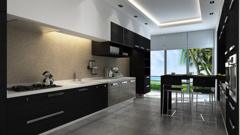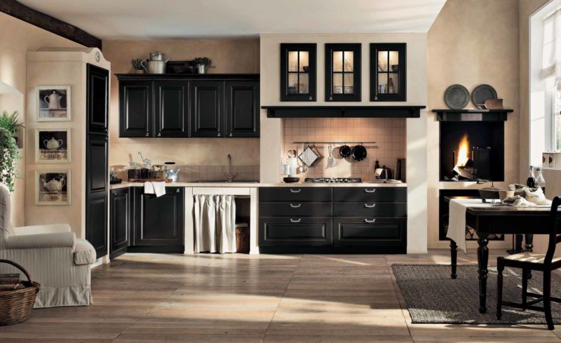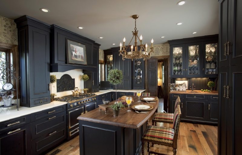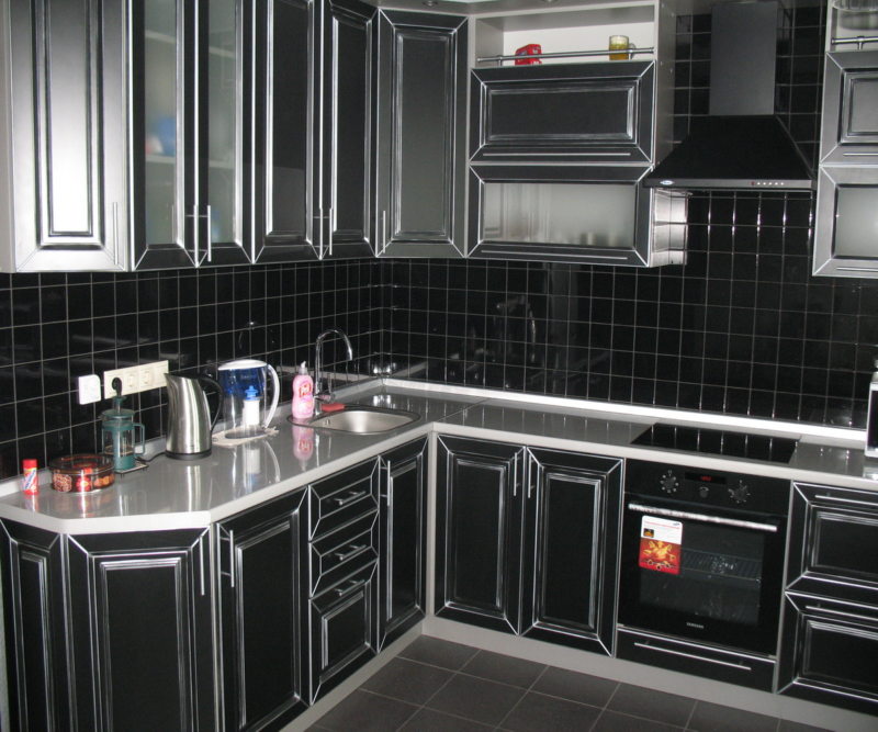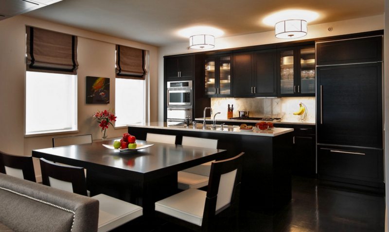 Отделка кухни черным цветом