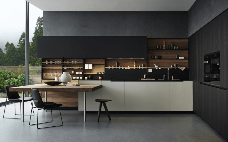Правильное сочетание черного цвета в интерьере кухни справляется со многими смелыми дизайнерскими решениями.