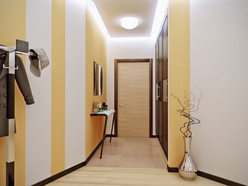 Очень удачно для светлой прихожей используется сочетание белого с желтым. Желтый создаст теплую атмосферу, сделает комнату ярче. Но с ним нужно быть осторожным, так как этот цвет может зрительно уменьшить пространство.