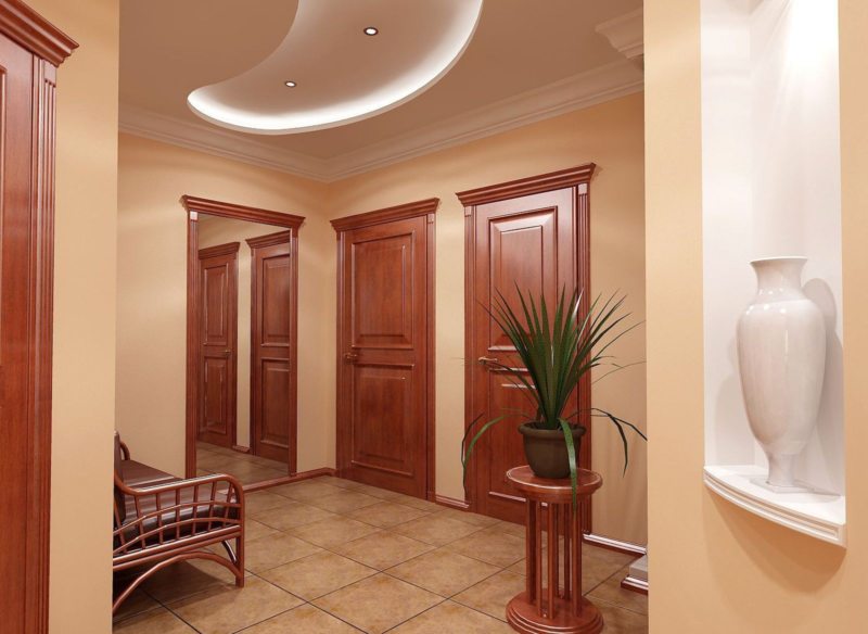 Возможно наличие нескольких его источников или одного большого. Для создания наиболее теплой обстановки сразу над входом можно поместить большой светильник, либо по всему периметру прихожей установить несколько ярких бра.