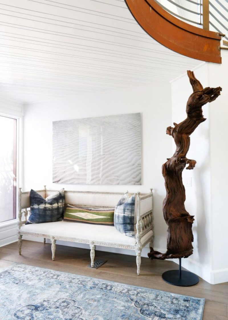 Можно выбрать зеркало с красивой рамой или зеркало-солнце, характерное для ар-деко. Весьма уместно может вписаться большое напольное зеркало, которое поможет оценить внешний вид с ног до головы перед выходом на улицу.