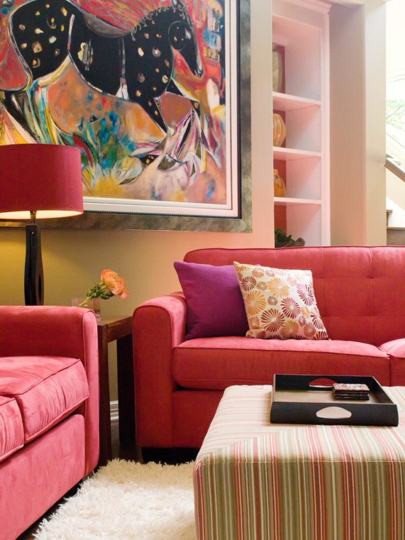 - Комбинирование. Яркие стены с ярким диваном, это непростой вариант.