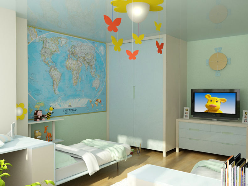 Если Вы занимаетесь планировкой квартиры до начала проживания в ней, или же делая полный ремонт всех комнат, задумайтесь над тем, что детская должна быть достаточно просторной, и хорошо освещаемой комнаткой. Ведь для полноценного развития малыша очень важно наличие свободного пространства и большого количества света! Если Вы выбрали помещение с темными углами, от них следует сразу избавиться, используя различные варианты светильных устройств, а также декор. Это поможет создать довольно жизнерадостную обстановку и настрой. В комнатке должно быть «зажигательно»!