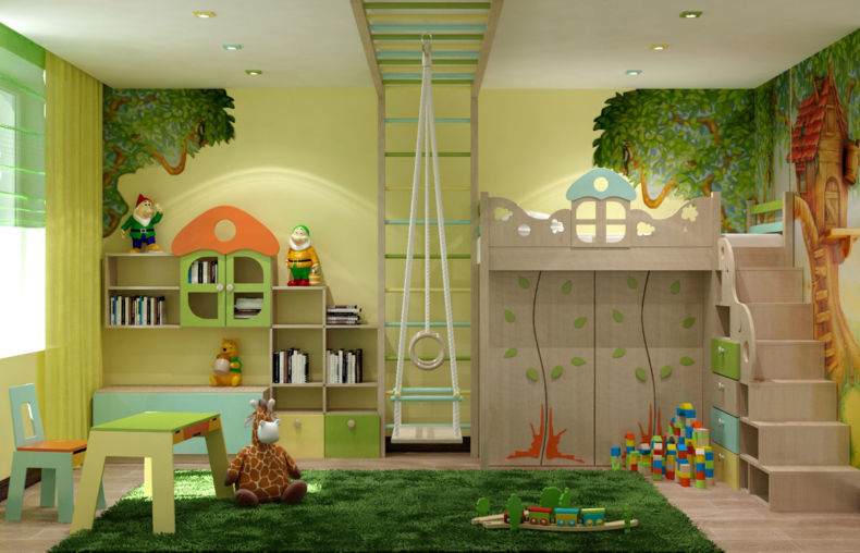 Здесь уже настоящий мир, который можно постичь в таком возрасте! Ребенок до семи лет бегает, прыгает, играет, развивается, принимает гостей, узнает много чего нового, делает какие-то открытия. Совсем необязательно, чтобы пространство строго было поделено на зоны. Пока что еще стол, за которым малыш в будущем будет делать домашние школьные задания, можно обставить какими-то красивыми и интересными вариантами игрушек, прочих мелочей. А вот при помощи ярких цветов настроение будет подниматься, ребенок будет простимулирован быть гораздо активнее. В интерьере не рекомендуется применять больше, чем три различных варианта цветовой гаммы.