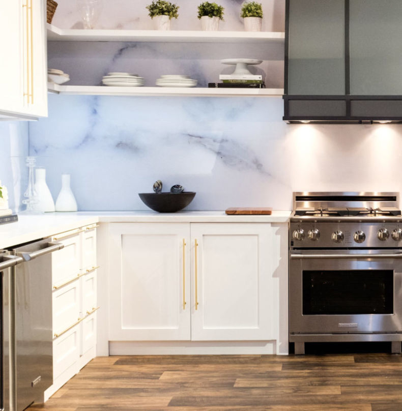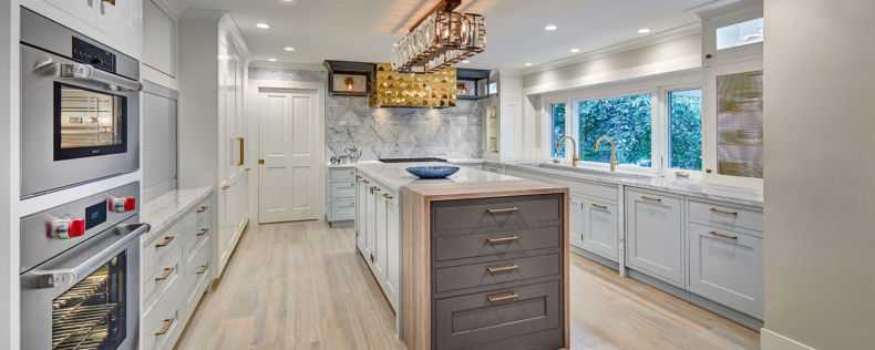 Моден, по-прежнему, классический стиль. Например, мебель белого цвета с рядом дверец-окон. Рассмотрите фото новинок дизайна кухни 2022 года и увидите, что использовано в модных трендах года.