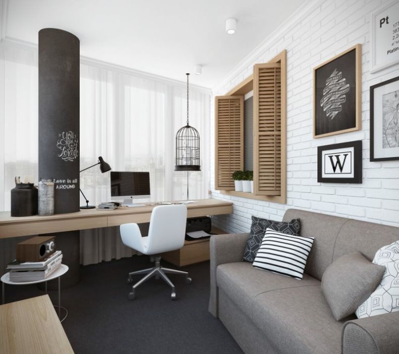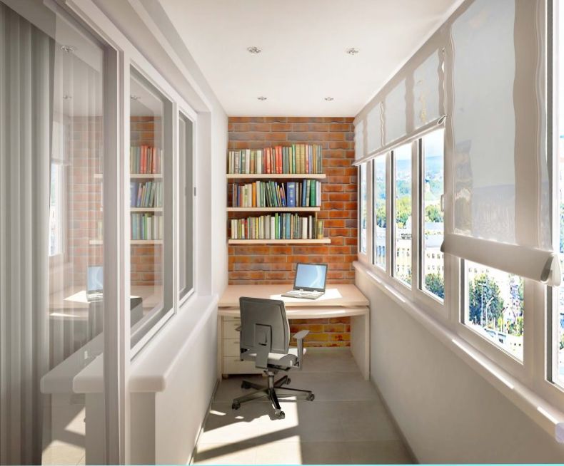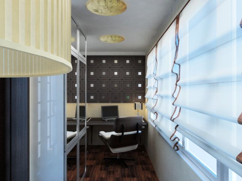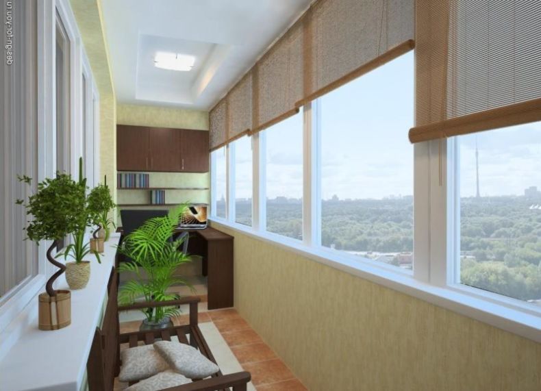 Главным преимуществом таких пространств то, что их можно разбивать на зоны. Таким образом, лоджия может служить, как комнатой отдыха, так и личным кабинетом. Если использовать в дизайне именно такую направленность, то стоит подумать о цветовых комбинациях, разделяющих пространство.