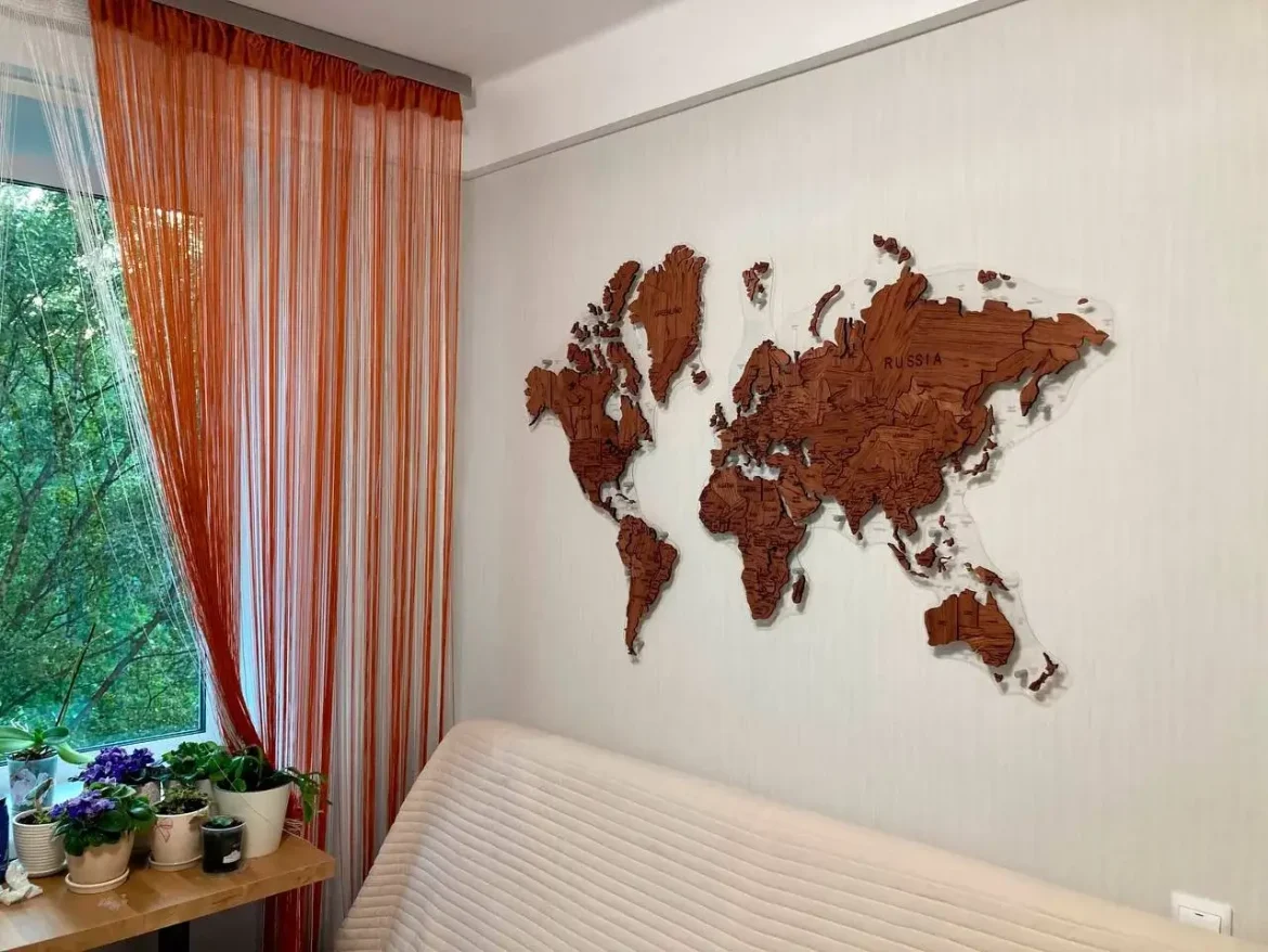 - Карта мира на стену может стать образовательным элементом в интерьере, помогая изучать географию, страны и континенты. Она может быть полезна как для детей, так и для взрослых, обогащая знания о мире и его разнообразии.