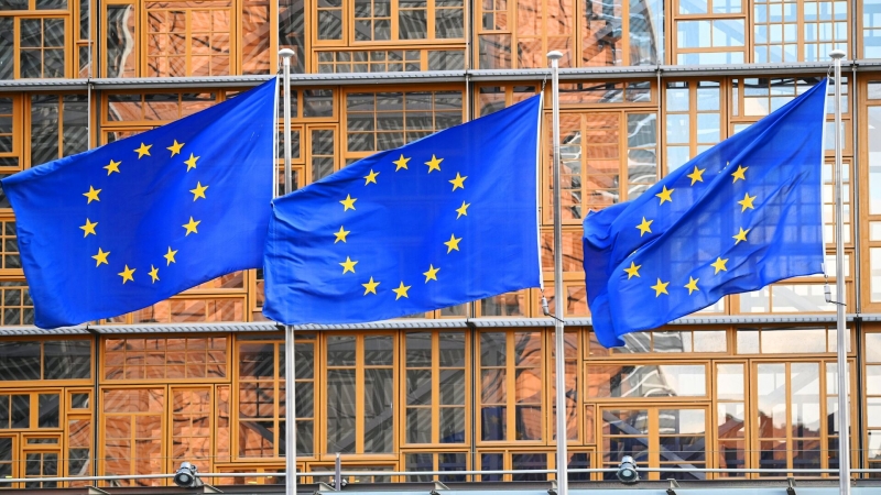Флаги с символикой Евросоюза в Брюсселе. Архивное фото