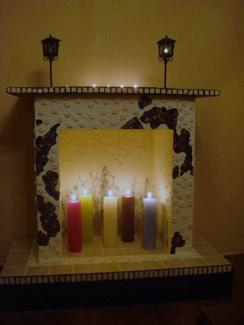 Можно сделать вполне безопасный огонь внутри Вашего камина. Для этого установите в топку свечки с разной формой и высотой.