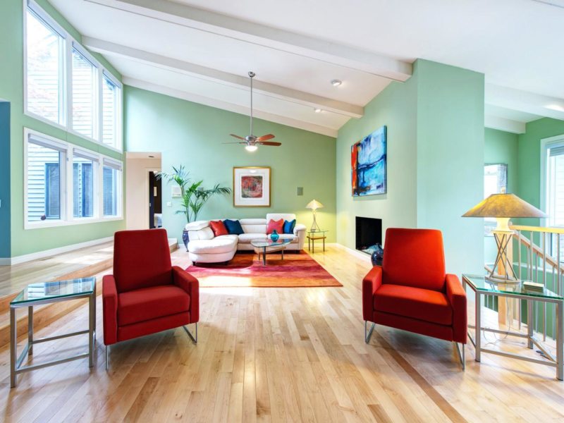 Фисташковый цвет поможет зрительно расширить помещение, поэтому его можно использовать для маленьких гостиных. С помощью него можно придать помещению легкости и воздушности.