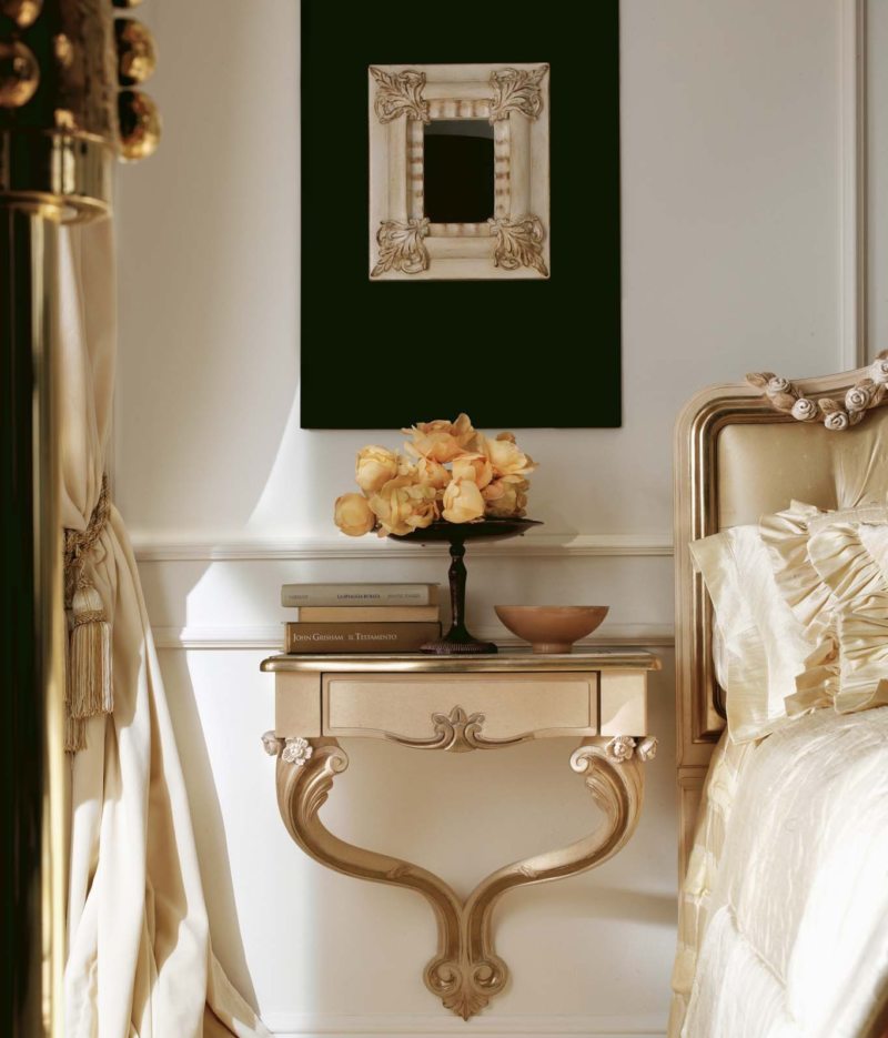 - Прикроватные тумбы с высокими ножками будут гораздо функциональнее. Их можно заменить длинной полкой в изголовье кровати.