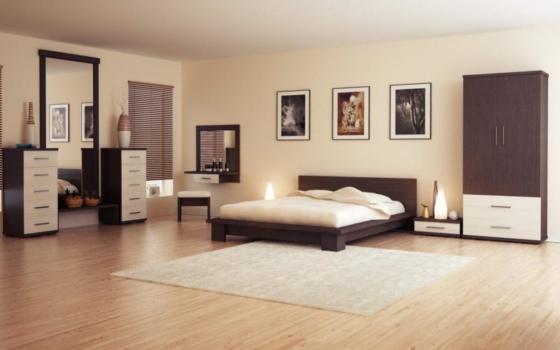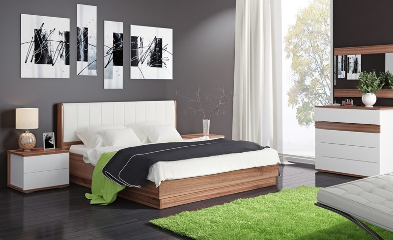 Коричневый, черный или белый гарнитур в спальню – это идеальный вариант. В первую очередь, он должен быть практичным с точки зрения стиля.