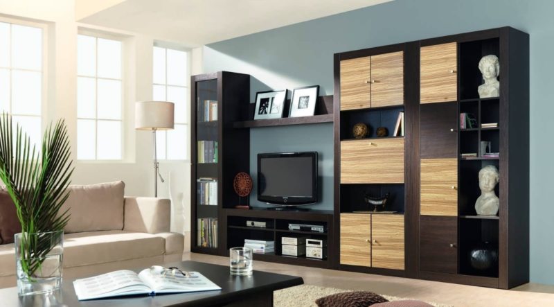 При этом совершенно необаятельно прятать любимую литературу, рамочки с фото и иную мелочовку, к которой Вы так привыкли. Для этого прекрасно подойдет вариант шкафа-витрины, демонстрируя Ваши любимые предметы на виду у всех гостей.