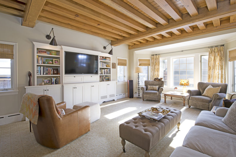 К напольному покрытию следует подойти с соответствующей скрупулезностью. Если используется деревянный паркет, то его следует обработать лаком, это придаст блеска. Но важно оставить природную фактуру.