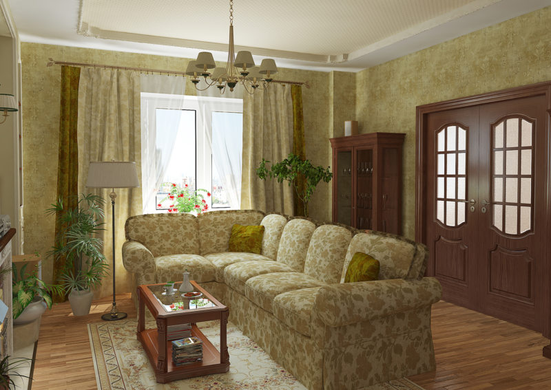 Цвета для гостиной выбираются из следующего перечня: бордовый, темно-зеленый, золотой и бронзовый.