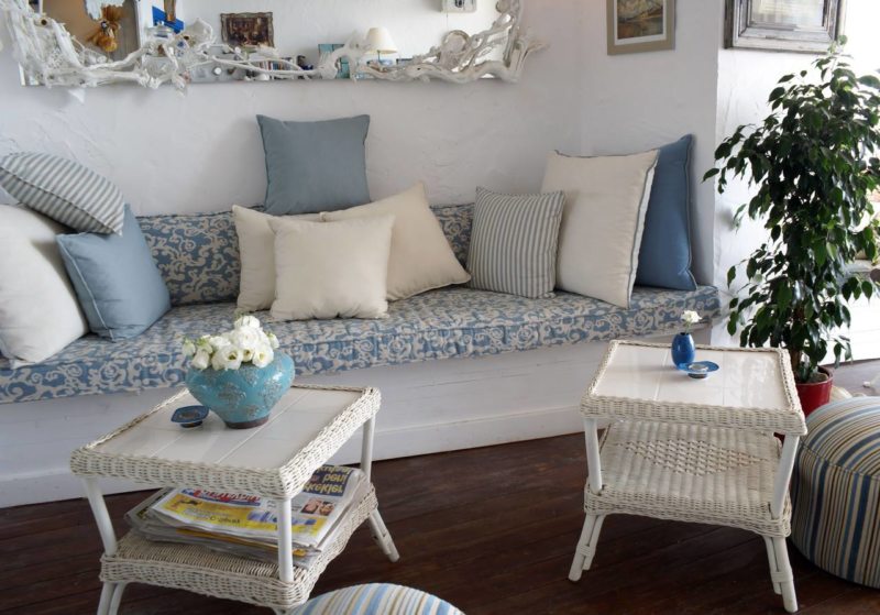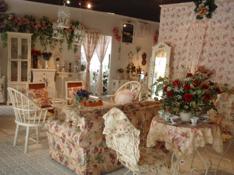 Стилю свойственно много яркого света, светлых оттенков, древняя мебель и дополнения к ней, а так же настоящие растения, безделушки и натуральные каменные породы.