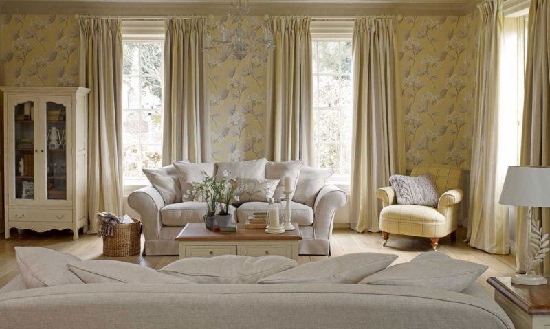 Стиль прованс в интерьере гостиной на фото всегда радует своими размерами.