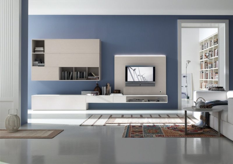 Стенка в гостиную в стиле хай – тек должна иметь небольшое количество деталей.