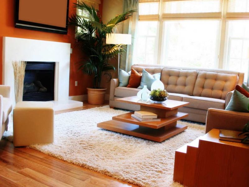 Для напольного покрытия лучше всего подходит ковролин в однотонной раскраске.
