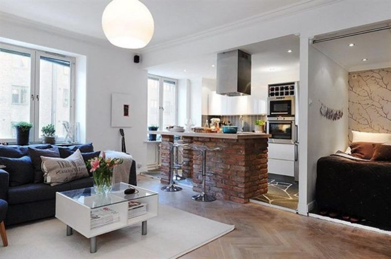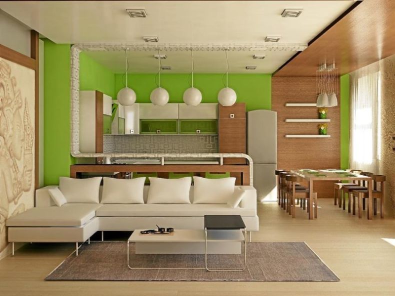 Безусловно, если Вы предпочитаете, чтобы в комнате было свободно и просторно, стенку между двумя комнатами можно спокойно сносить. Но не забудьте обязательно получить разрешение по документам ля этого! Ну а если Вы предпочитаете пускай небольшого размера, но уютную кухоньку, стену можно убрать только наполовину. Всю часть ее, которая останется, декорируйте под интересную перегородку. Если есть желание, можете сделать также дополнительные варианты перегородок, используя гипсокартонные листы. При помощи них получится сделать отличное зонирование.