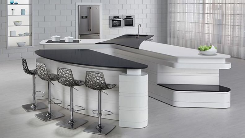 Что касается этого элемента, то он ставится не просто для декорации. Он имеет немаловажное значение в вопросе функциональности. Ведь с ее помощью можно очень даже неплохо экономить пространство, заменив большой и громоздкий обеденный стол. Кроме того, она помогает разграничить зону гостиной комнаты, от кухонной. При этом пространство будет объединенным. Это очень удобный вариант планировки, благодаря чему можно общаться с родными и близкими, не отрываясь от процесса приготовления пищи.