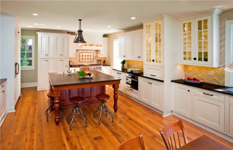Для создания своей кухни-гостиной в собственном доме довольно уютной и стильной, следует добавить некоторые аксессуары. Например, это могут быть растения в горшочках, декоративная посуда, а может быть даже просто самые обычные банки с консервацией и прочими интересными заготовками. В интерьере кухни загородного дома стоит уделить больше внимания к мелочам.