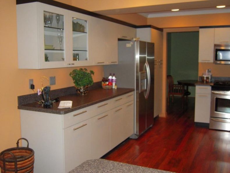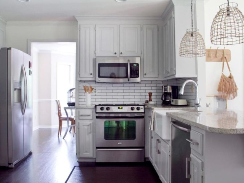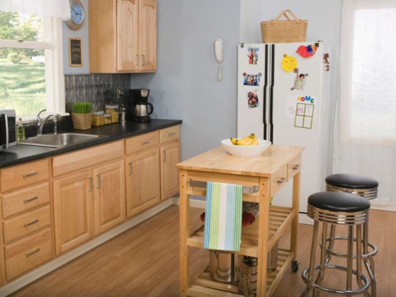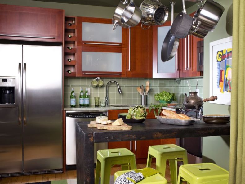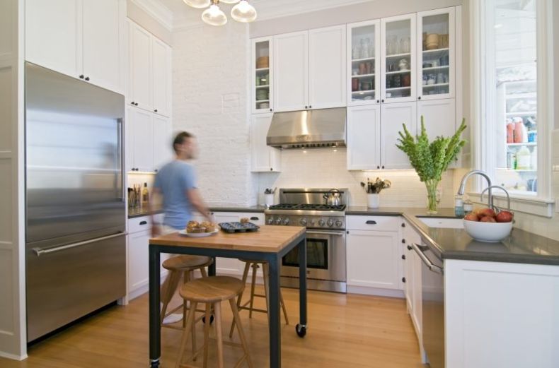 Если имеется желание и возможно, вообще уберите дверцы на шкафчиках. Также можно их заменить на раздвижной или стеклянный тип.