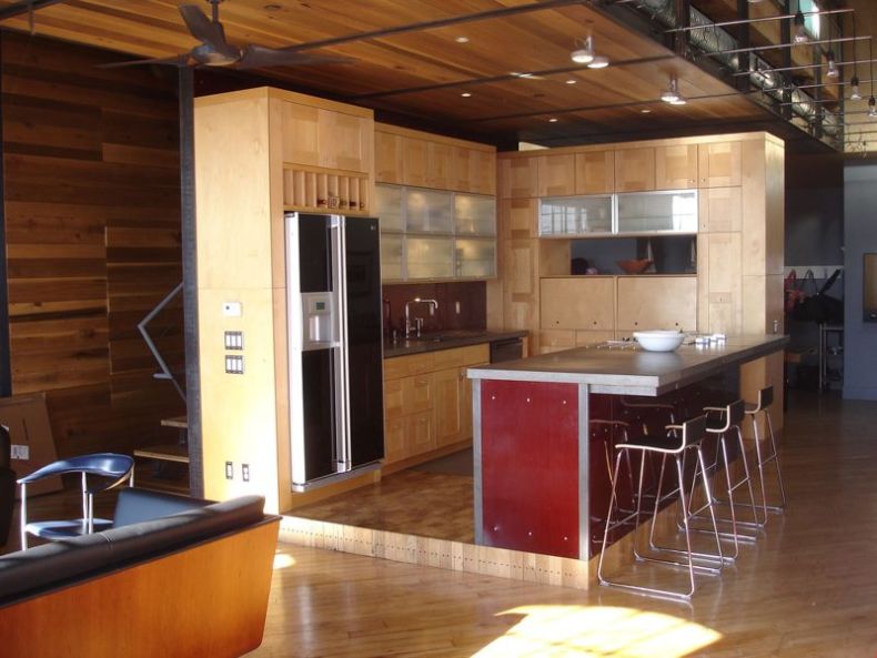 - Чтобы кухня не была ограничена свободным пространством, не стоит устанавливать входные двери в это помещение. Ведь на сегодня предлагаются современные модели мощнейших вытяжек, из-за работы которых в жилье не останется никаких неприятных запахов!