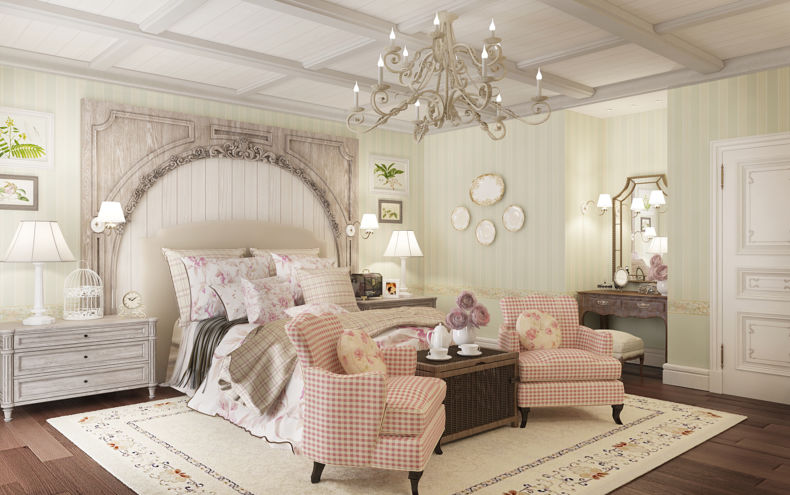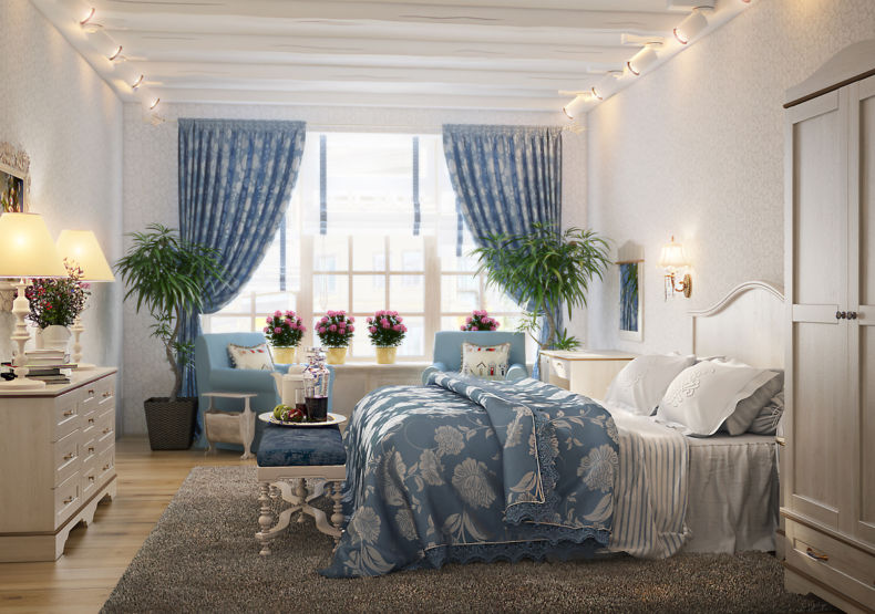 Интерьер светлой спальни в стиле Прованс