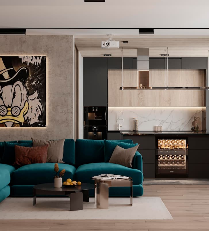 - Цветовая гамма играет ключевую роль в создании атмосферы в интерьере. От выбора цветов зависит настроение и восприятие пространства. Светлые тона визуально увеличивают помещение, делая его светлее и просторнее. Темные цвета, наоборот, могут сделать комнату более уютной, но при этом зрительно уменьшить ее. Цветовые акценты можно расставить с помощью мебели, текстиля и декоративных элементов. Важно также учитывать, как цвета сочетаются между собой, чтобы создать гармоничный и сбалансированный интерьер.