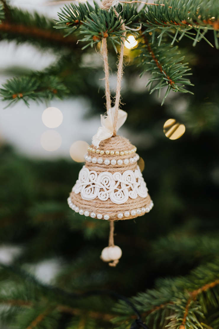 А как красиво нарядить такую ель? Просто обвяжите ее бусинами и гирляндами. При выключенном свете выглядеть она будет не хуже.
