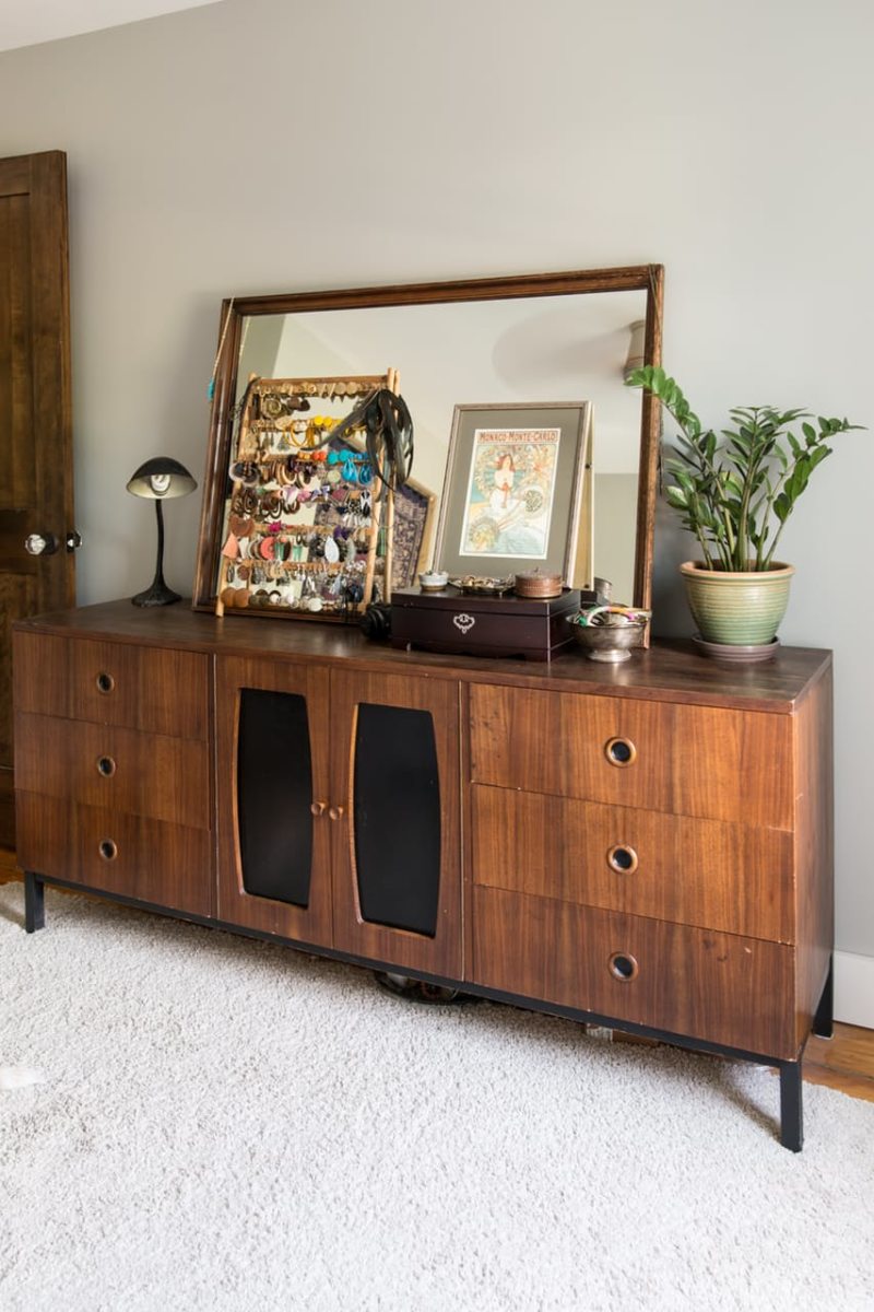Можно создать одну концепцию, или сделать акцент на мебели. Вот к примеру: в темной комнате расположите белый комод в спальню. Поиграйте на контрасте.