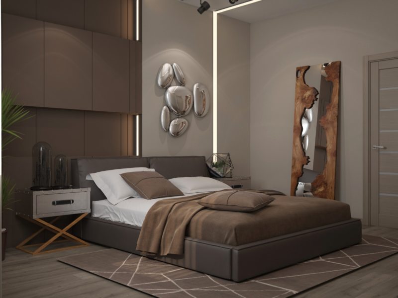 Воздействие на психику — в спальной в коричневых тонах с легкостью забываешь обо всех неприятностях, что произошли в течение дня.