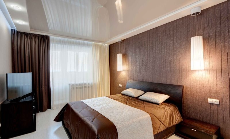 - Не стоит выбирать сильно темные обои, чтобы темно коричневая спальня не стала сплошным темным пятном, что не исправит ситуацию даже свет.
