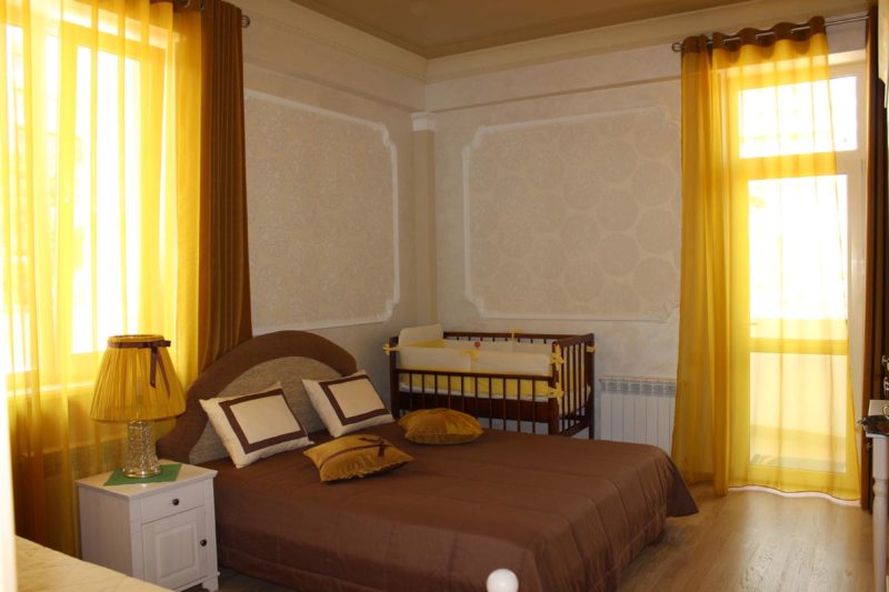 Коричневая спальня абсолютно не должна быть монохромной, строго в одном цвете, потому как есть шанс, что темно будет в комнате, и стены как бы давить будут на психику.