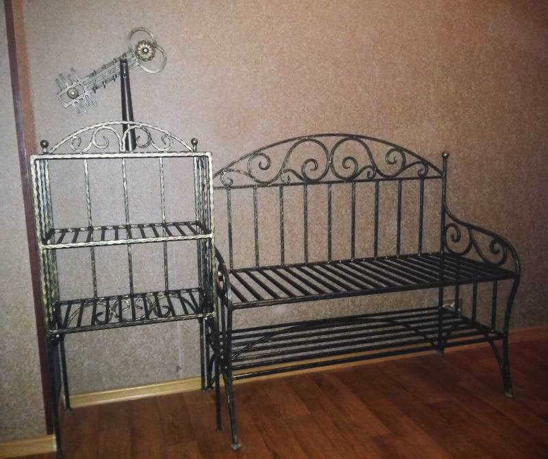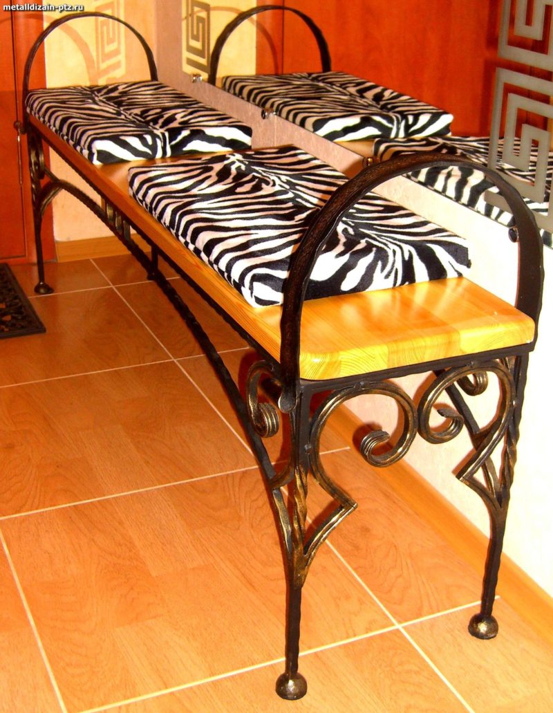 Кованые банкетки в прихожую с местом для хранения обуви дополнят любую прихожую.