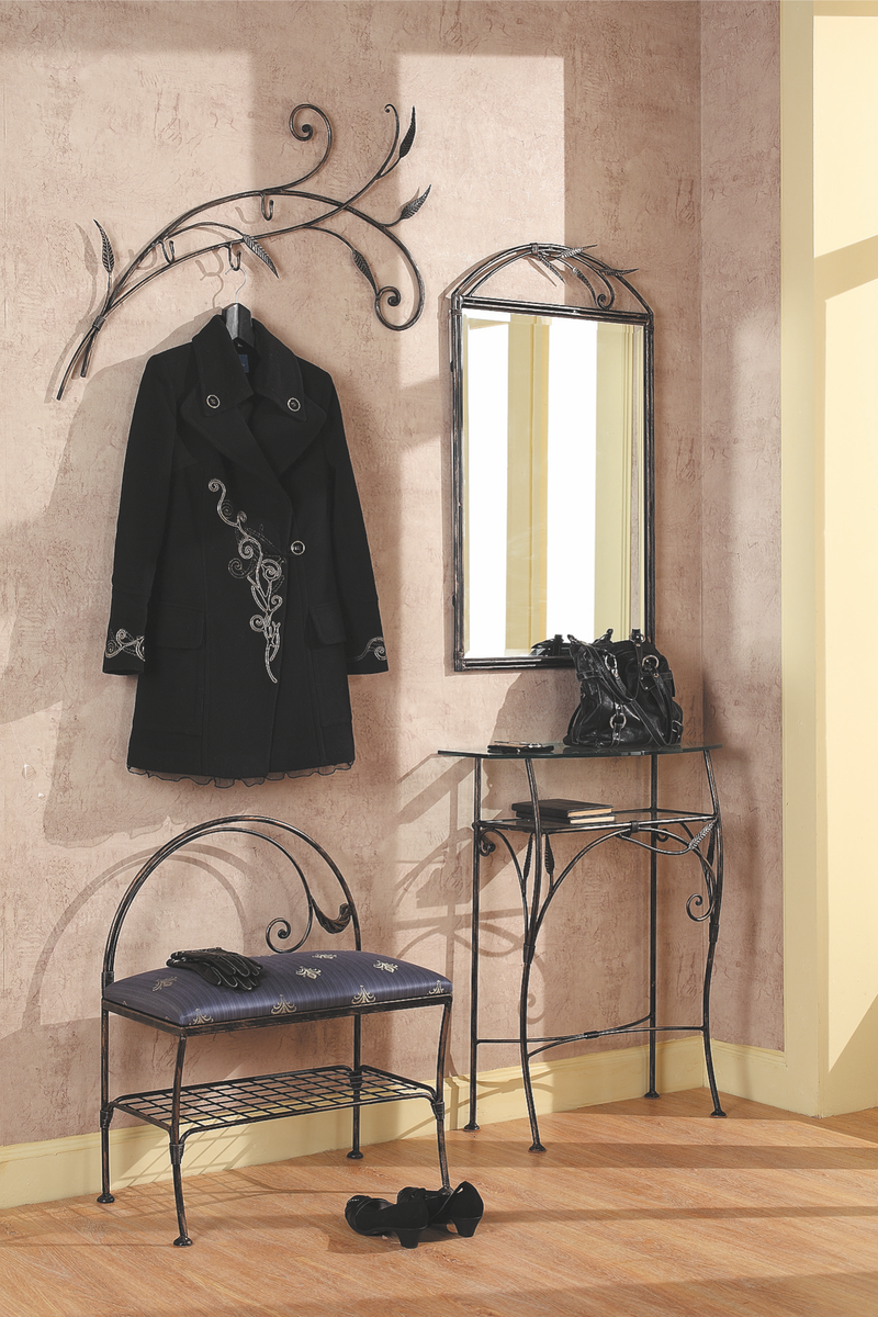 Кованая мебель в прихожую обладает универсальной формой, имеет простой дизайн, и при грамотном сочетании вещей, дополнит интерьер, выполненный в любом стиле.