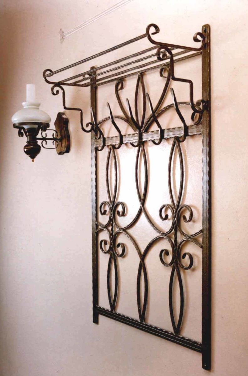 Кованые вешалки в прихожую есть двух видов. Вешалка, что крепится на стену, совсем не занимает место, и прекрасно подходит для хранения верхней одежды.