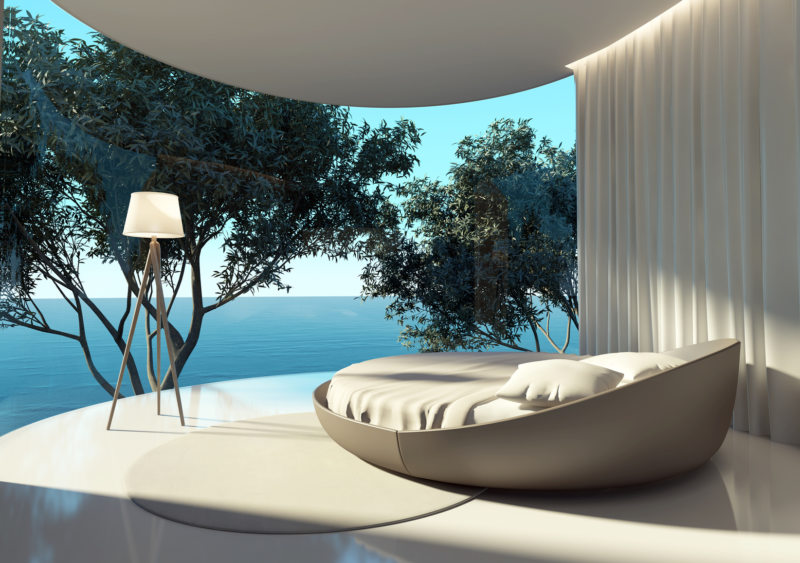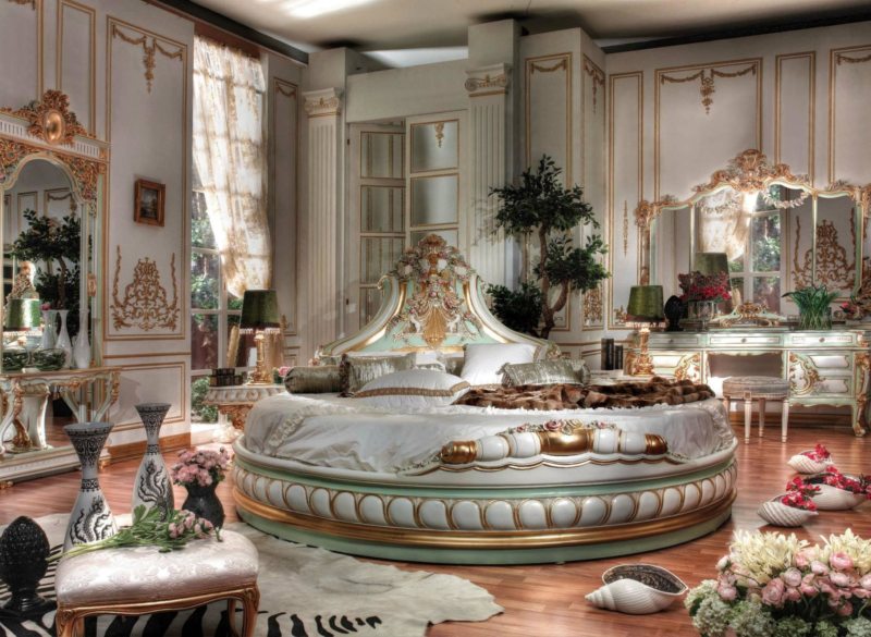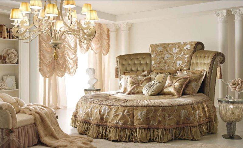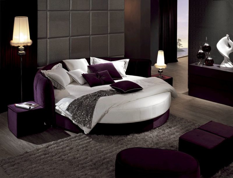Эксклюзивный интерьер с круглой кроватью в спальне можно создать в любом стиле и оттенке.