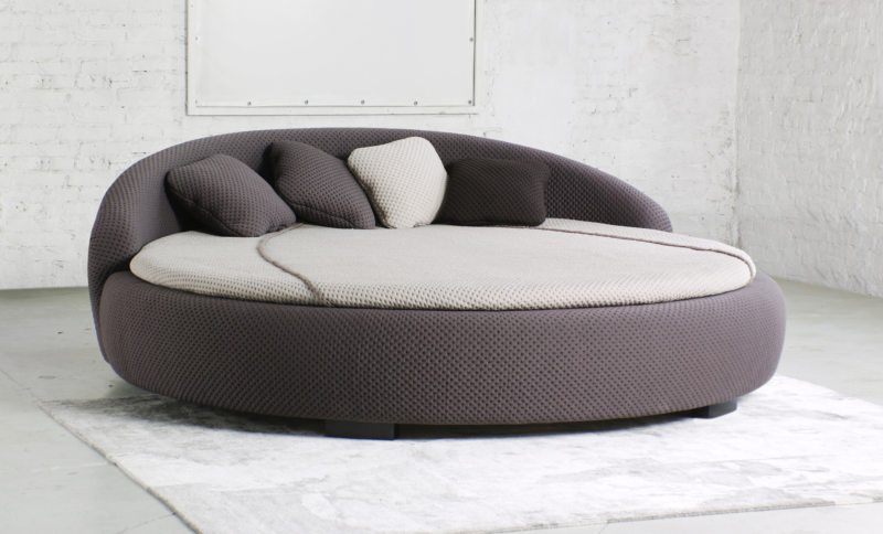Круглый диван-кровать практичен своими встроенными ящиками. Этот необычный дизайн подойдет ко многим стилям.