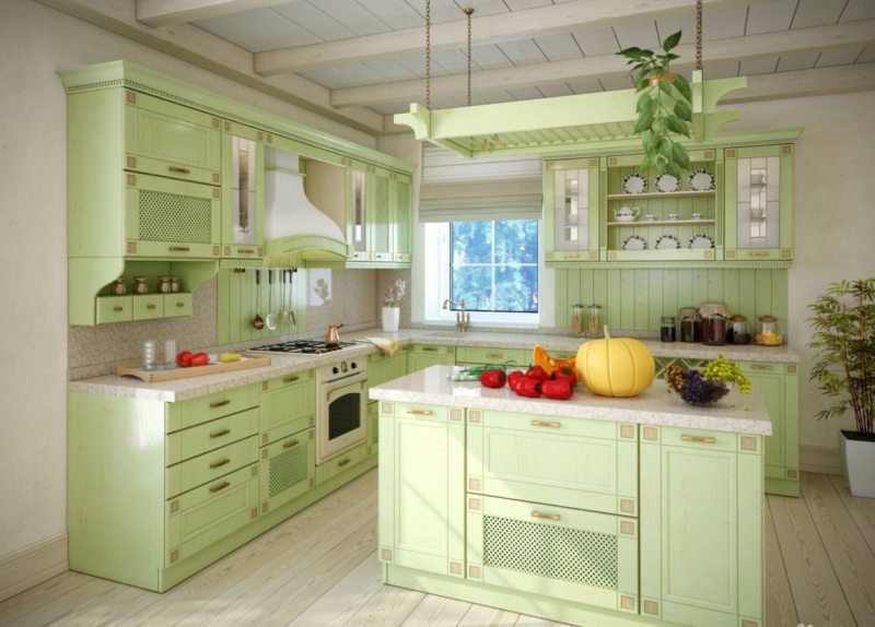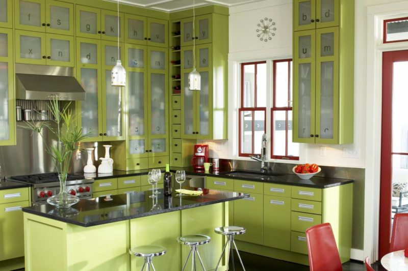 Многообразие тонов и полутонов салатового цвета позволяет преобразить любую кухню до неузнаваемости. Легкие мягкие салатовые тона, используемые часто в стиле прованс, создадут на кухне атмосферу безмятежного спокойствия и уюта.