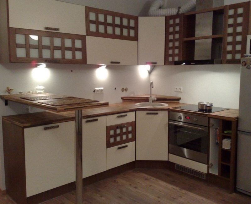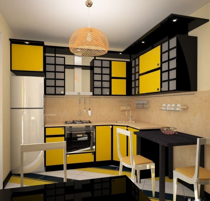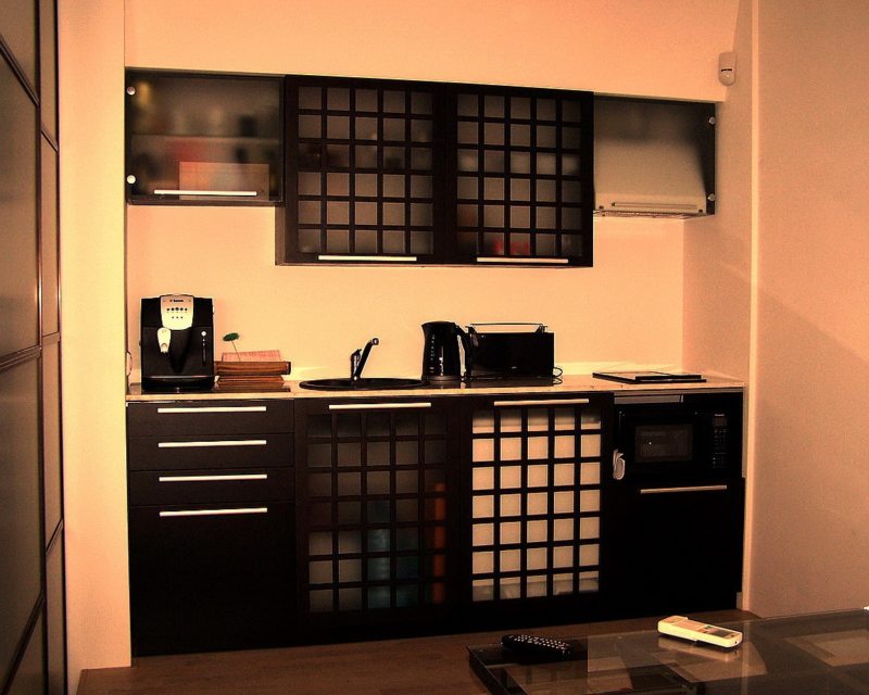 Стоит отметить, что все кухонные принадлежности должны быть спрятаны в шкафу, поэтому шкафы должны быть не только полностью стеклянными, но и с закрытые.
