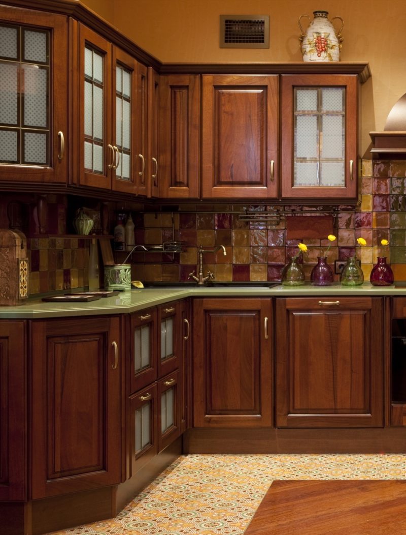 Многие ассоциируют китайский интерьер кухни с красным цветом, но нет, красного цвета не должно быть много, и необходимо заменить его на темно коричневые, темно красные и золотистые оттенки, так как именно они приемлемые этому направлению стиля.