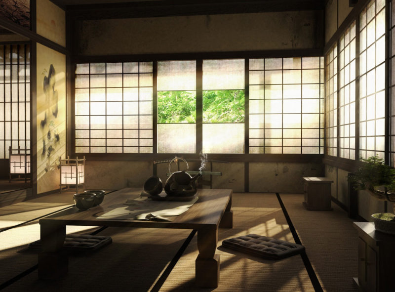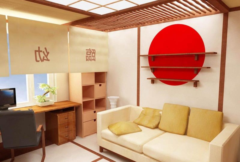 Главное в мебели данного интерьера это функциональность. Мебель должна быть вместительна. Как правило, мебель изготовлена из бамбука дерева, так как это придает более эстетичный вид интерьеру.